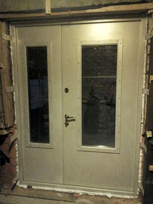 Двустворчатая глухая техническая дверь с фрамугой (RAL 3020)